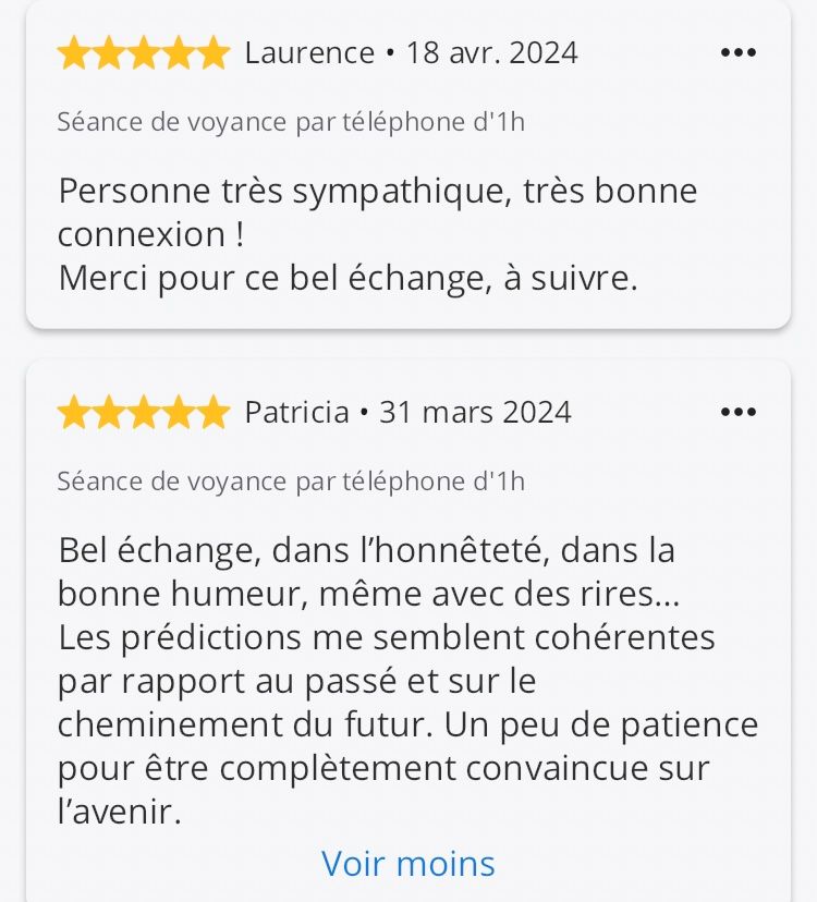 Une écoute attentive et le calme durant la séance permet d'obtenir vos réponses, et conseils avisés en fonction de votre situation et votre demande.